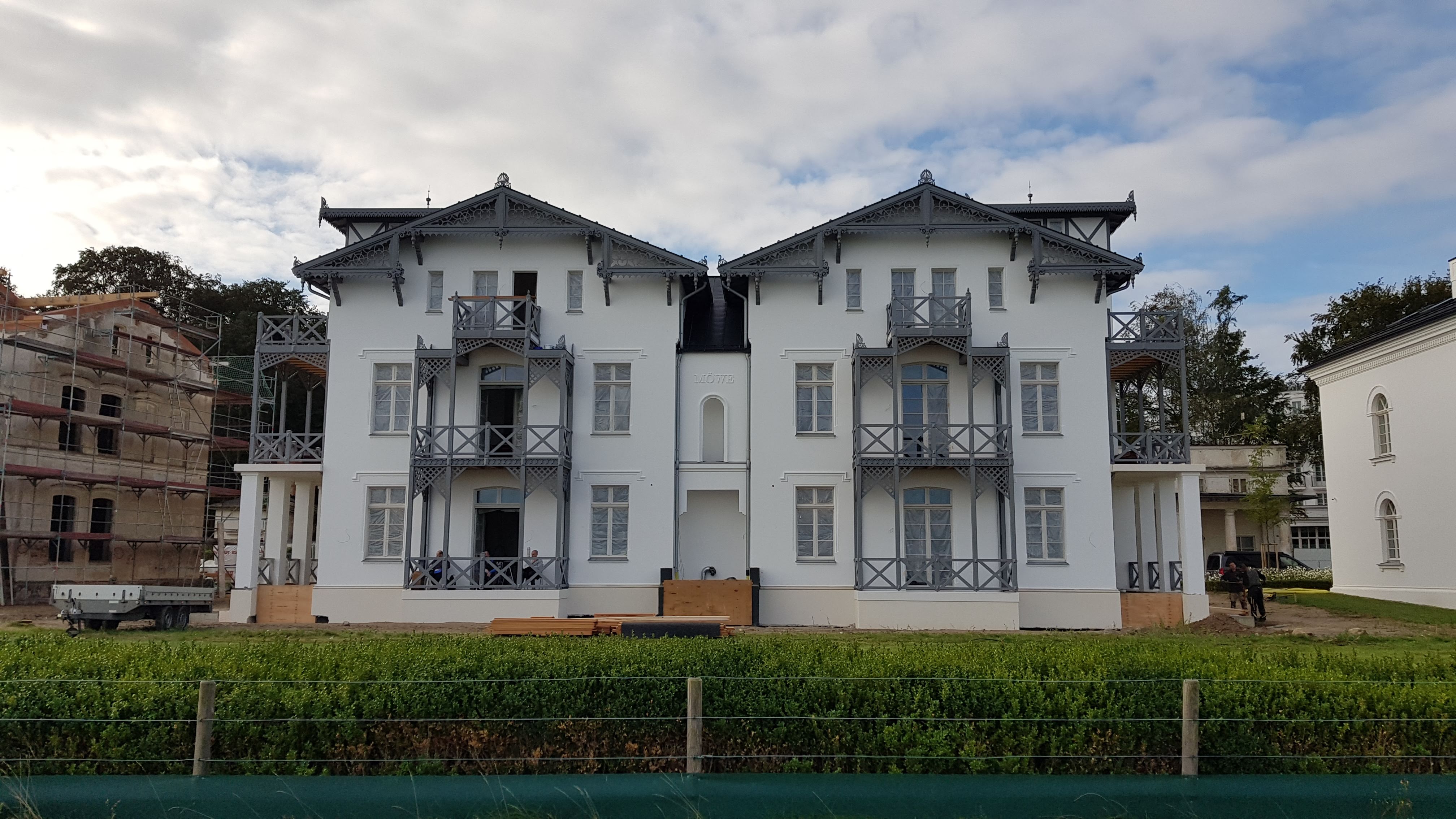 Pünktlich zum Tag des offenen Denkmals sind die Gerüste an der Villa „Möwe“ in Heiligendamm gefallen. Die historische Logiervilla ist fertig saniert und die neuen Bewohner können einziehen. Zwei Studios in den Türmen der Villa sind noch zu haben.