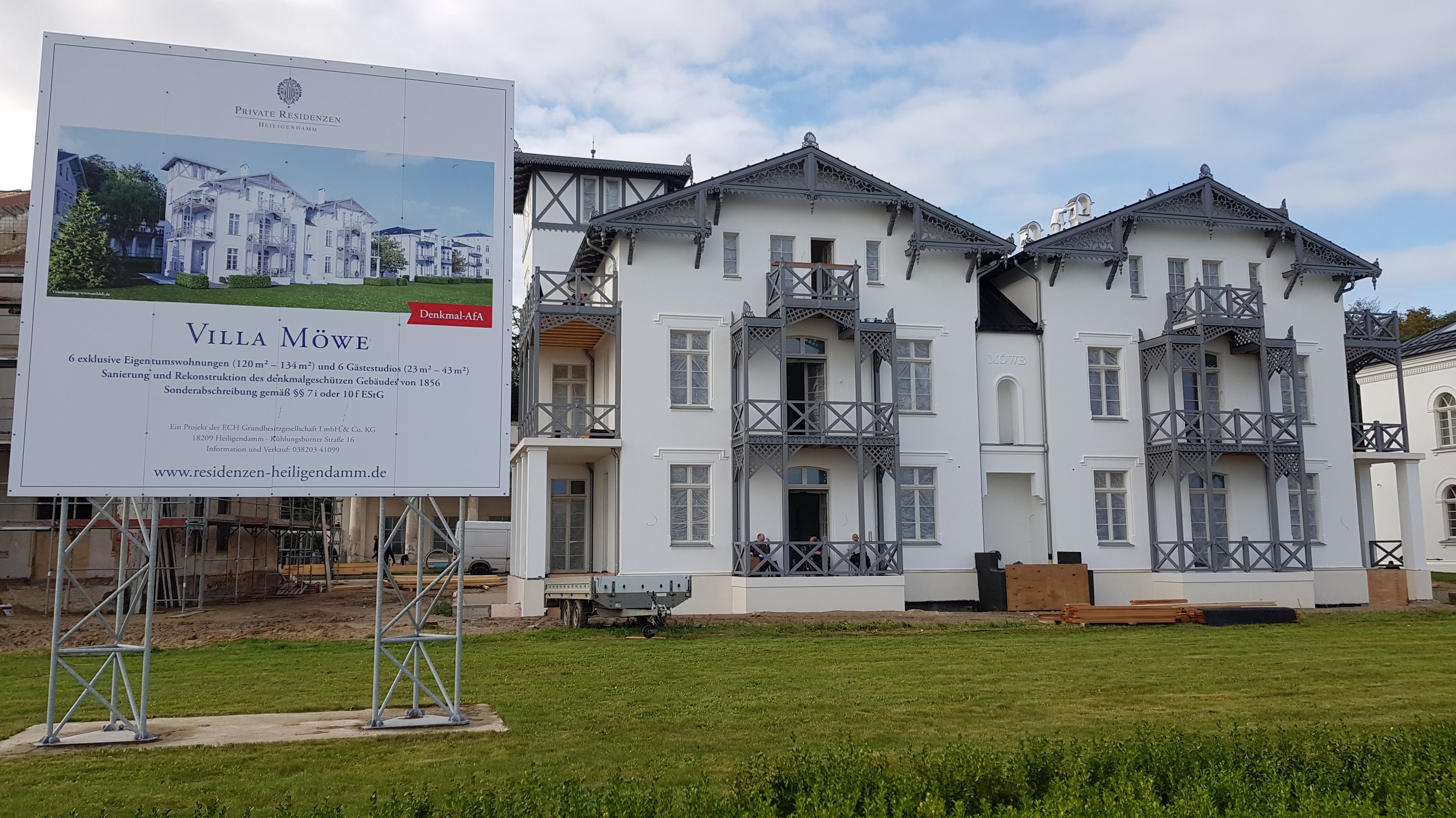 Der Hintergrund ist auch ein wirtschaftlicher: Die Erwerber der Wohnungen in den Villen können durch Sanierung nach dem Erwerb von der Abschreibung für Altbauten (AfA) profitieren. In Heiligendamm gehört die AfA zum Vertriebsmodell der EntwicklungsCompagnie Heiligendamm (ECH) und die Erfinder der Abschreibung dürfte es freuen, dass dadurch tatsächlich, sichtbar und an prominenter Stelle Altbauten gerettet werden.