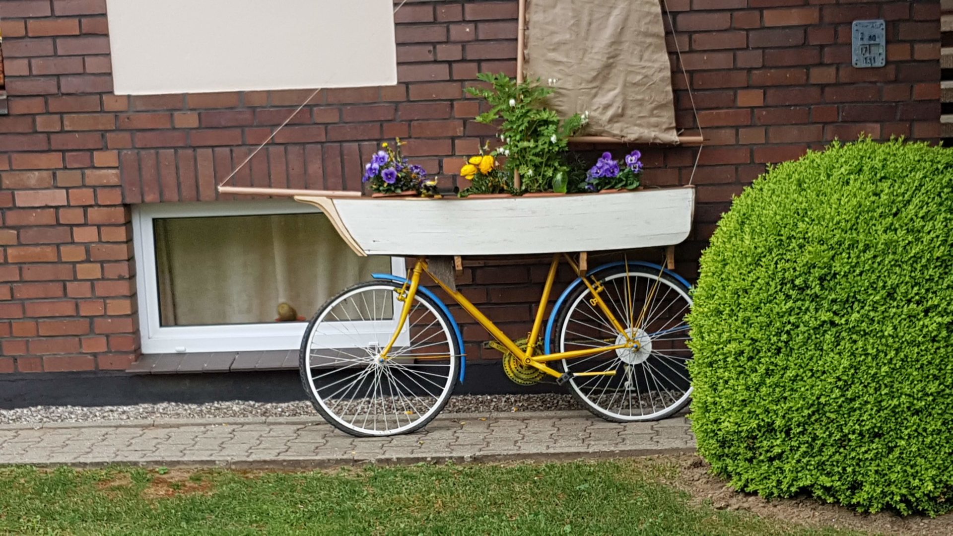 Natürlich sind all diese Fotos nur eine Momentaufnahme. So ist das mit den Blumen: Sie blühen und verwelken, neue kommen hinzu und auch das Blumenrad selbst wird immer weiter perfektioniert. Die hartgesottenen Blumenräder schmücken im Winter weiterhin die Straßen, andere überwintern drinnen. Manche kommen im neuen Jahr mit völlig neuem Aussehen wieder, einige ziehen mit ihren Machern um. Wir führen auch die Blumenräder weiter auf, die es nicht mehr gibt, um an sie zu erinnern. Für unsere Liste ist es aber schön, wenn Sie uns melden, wenn ein Blumenrad im neuen Jahr nicht wiederkommt. Vor allem freuen wir uns aber über neue Sichtungen. Schicken Sie uns ein Foto (Querformat) mit Standort (Adresse) an info@erstes-seebad.de. Vielen Dank! Und wenn Sie auch mitmachen wollen – hier gibt es Infos zur Aktion.