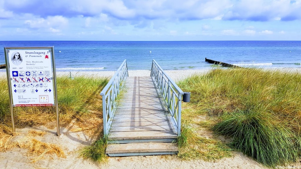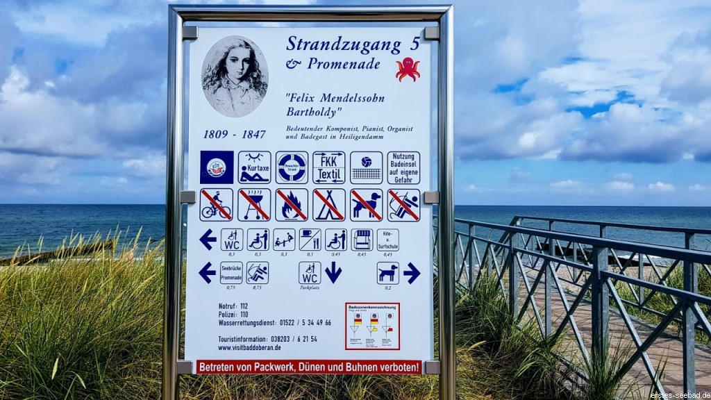 Der Namensgeber Felix Mendelssohn Bartholdy war vielleicht nicht an dieser Stelle baden, aber er war Badegast des ersten deutschen Seebades und schrieb hier als junger Mann die „Doberaner Ouvertüre“. Und da ihn dazu die Stille des Klosterbereiches inspiriert hat, ist dieser Strandabschnitt weit weg vom lebendigen Ortskern durchaus Bartholdys Namen wert.