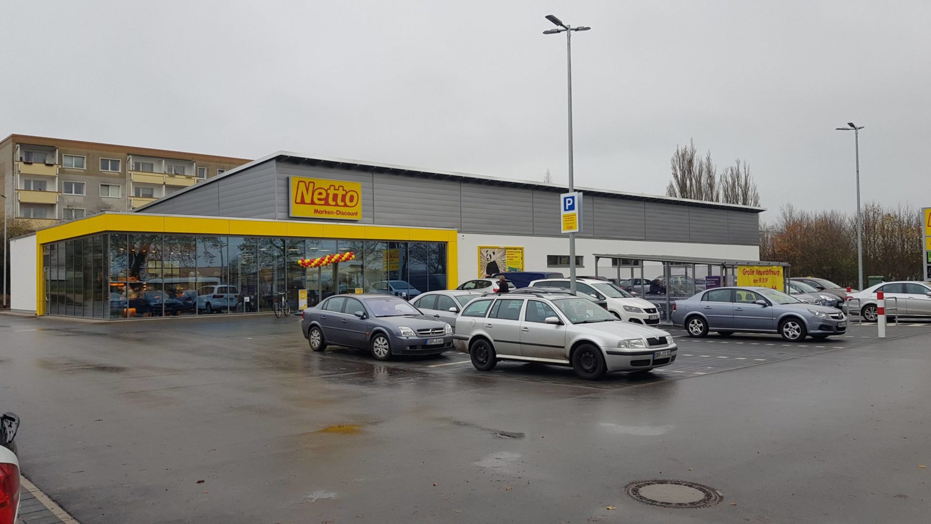 Auf Doberans neuer „Shopping Mall“ – der Nienhäger Chaussee – hat nach Penny und Norma nun der dritte Discounter eröffnet. Zwischen dem Wohngebiet an der alten Gärtnerei und dem neuen Wohnpark ist ein NETTO-Markt entstanden. Es handelt sich hierbei nicht um den „schwarzen“ Netto „mit Hund“, sondern den „gelben“ Netto, der aus dem Discounter PLUS hervor gegangen ist. Die Zufahrt zum Markt erfolgt über die Nienhäger Chaussee – die Stadt hatte sich dagegen gewehrt. Dafür hat sie aber einen Überweg von der Nienhäger Chaussee über den Straßengraben gebaut, damit die Fußgänger vom Gehweg zum Markt kommen.