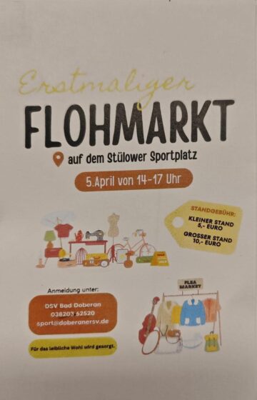 Veranstaltungsarchiv Erstmaliger Flohmarkt auf dem Stülower Sportplatz (05.04.2025) 20. 03 2025 Martin Dostal 0 Diesen Beitrag teilen:teilen teilen teilen teilen teilen merken teilen teilen teilen RSS-feed teilen E-Mail drucken spenden Teilen mit: Auf Facebook teilen (Wird in neuem Fenster geöffnet) Facebook Auf X teilen (Wird in neuem Fenster geöffnet) X Familien-Flohmarkt auf dem Kamp Bad Doberan (5.05.2024)Datum14. 04 2024In Bezug aufVeranstaltungsarchivCity-Flohmarkt auf dem Kamp (17.09. & 15.10.2022)Datum24. 08 2022In Bezug aufVeranstaltungsarchivTermine der TRÖDELPISTE Flohmärkte in Bad DoberanDatum11. 04 2025In Bezug aufVeranstaltungsarchivAnzeige