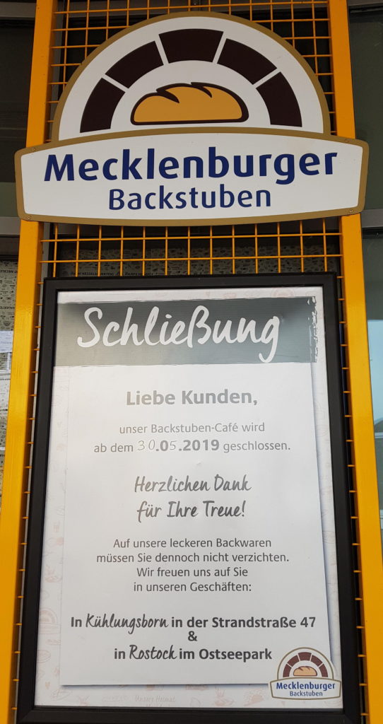 Was die Mecklenburger Backstuben zu diesem Schritt veranlasst hat, schreiben sie nicht, aber sie informieren ihre Kunden über die Schließung der Filiale. Das geschah schon vor zwei Wochen und wurde recht still zur Kenntnis genommen.