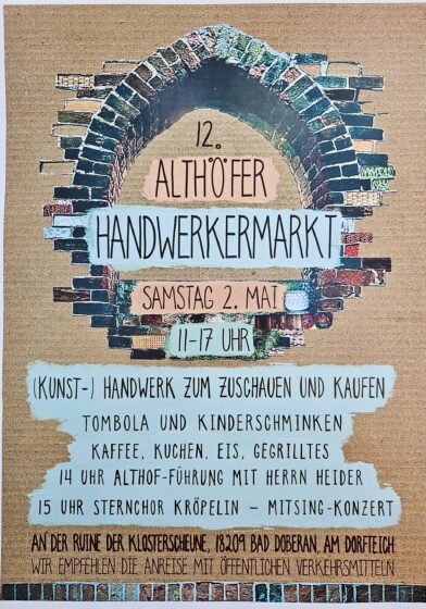 Veranstaltungen Handwerkermarkt in der Klosterruine Althof (02.05.2026) Martin Dostal 0 Diesen Beitrag teilen:teilen teilen teilen teilen teilen merken teilen teilen teilen RSS-feed teilen E-Mail drucken spenden Teilen mit: Auf Facebook teilen (Wird in neuem Fenster geöffnet) Facebook Auf X teilen (Wird in neuem Fenster geöffnet) X Gefällt mir:Gefällt mir Wird geladen … Ähnliche Beiträge