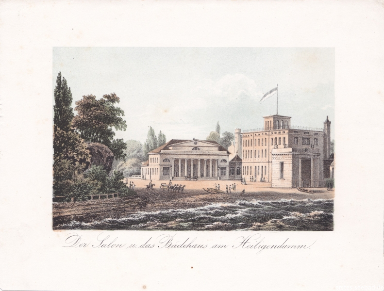 Letztlich war dieser Entschluss auch Professor Vogel zu verdanken, der gerade die Kutschfahrt an der frischen Luft als gesund anpries. Vogel und der Bauconducteur Johann Heinrich Christoph von Seydewitz wurden vom Herzog auf Bildungsreise geschickt. Sie kamen nach Pyrmont zu den berühmtesten Bädern seiner Zeit, lernten in Frankreich die Flussbadeanstalten kennen und kamen aus England mit der Erkenntnis zurück, dass es dort kein Badehaus gab, das nicht an der See stand. Damit war entschieden, dass das Badehaus direkt am Heiligen Damm entstehen soll.