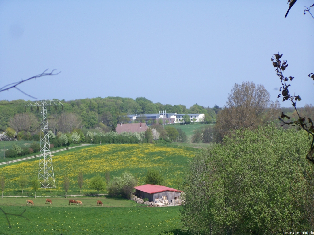 Eingebettet ist all das in eine einzigartige Landschaft mit weiten gelben Feldern und großen grünen Wiesen, uralten dunklen Wäldern und anziehenden hohen Hügeln, die großartige Aussicht auf die blaue Ostsee, auf die wunderbare Natur, die verträumten Dörfer und die große alte Hafen- und Hansestadt Rostock mit ihrem regen Schiffsverkehr am hellblauen Horizont bietet. Nirgendwo sonst hat man an der Ostsee so viele Möglichkeiten, richtige Hügel zu erklimmen und dem Himmel so nahe zu sein.
