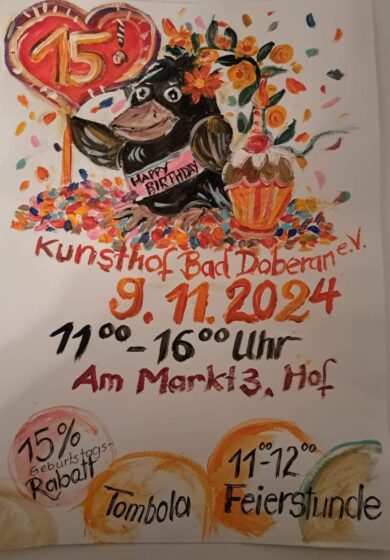 Veranstaltungsarchiv Jubiläumsfeier 15 Jahre Kunsthof Bad Doberan (09.11.2024) 8. 11 2024 Martin Dostal 0 Diesen Beitrag teilen:teilen teilen teilen teilen teilen merken teilen teilen teilen RSS-feed teilen E-Mail drucken spenden Teilen mit: Auf Facebook teilen (Wird in neuem Fenster geöffnet) Facebook Auf X teilen (Wird in neuem Fenster geöffnet) X Sommer-Tombola im Kunsthof Bad Doberan (27.07.2024)Datum27. 07 2024In Bezug aufVeranstaltungsarchivKunst:Offen zu Pfingsten (27.-29.05.2023)Datum17. 05 2023In Bezug aufVeranstaltungsarchiv35 Jahre buntes Treiben – der DKK feiert Geburtstag (11.11.2023)Datum2. 11 2023In Bezug aufVeranstaltungsarchivAnzeige