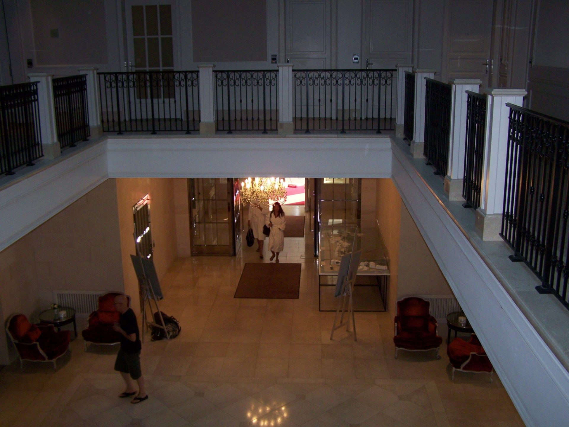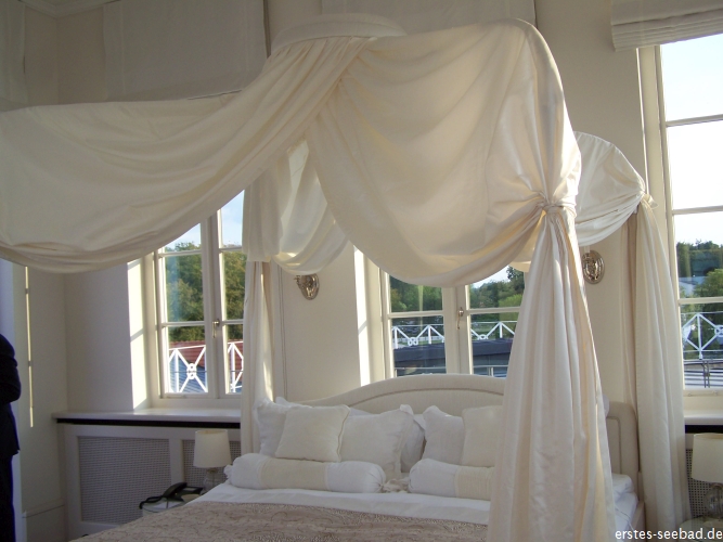 Vor dem Herzoglichen Wartesaal auf der Terrasse sitzen Statisten vor leeren Tischen. Die Schranken werden gekurbelt und schon sind wir auf dem Seebrückenplatz. Von dort aus kommen die Gäste ins Hotel, sind also offenbar ganz freiwillig den längeren Weg durch den Kurwald und die Promenade entlang gelaufen. Im Grand Hotel wurde viel gedreht. Man sieht das Foyer ganz klassisch von oben und der Rest dreht sich um das Paar, das auf einer Stelle steht. Es wurde angedeutet, dass sie die Suite mit der schönsten Aussicht haben.