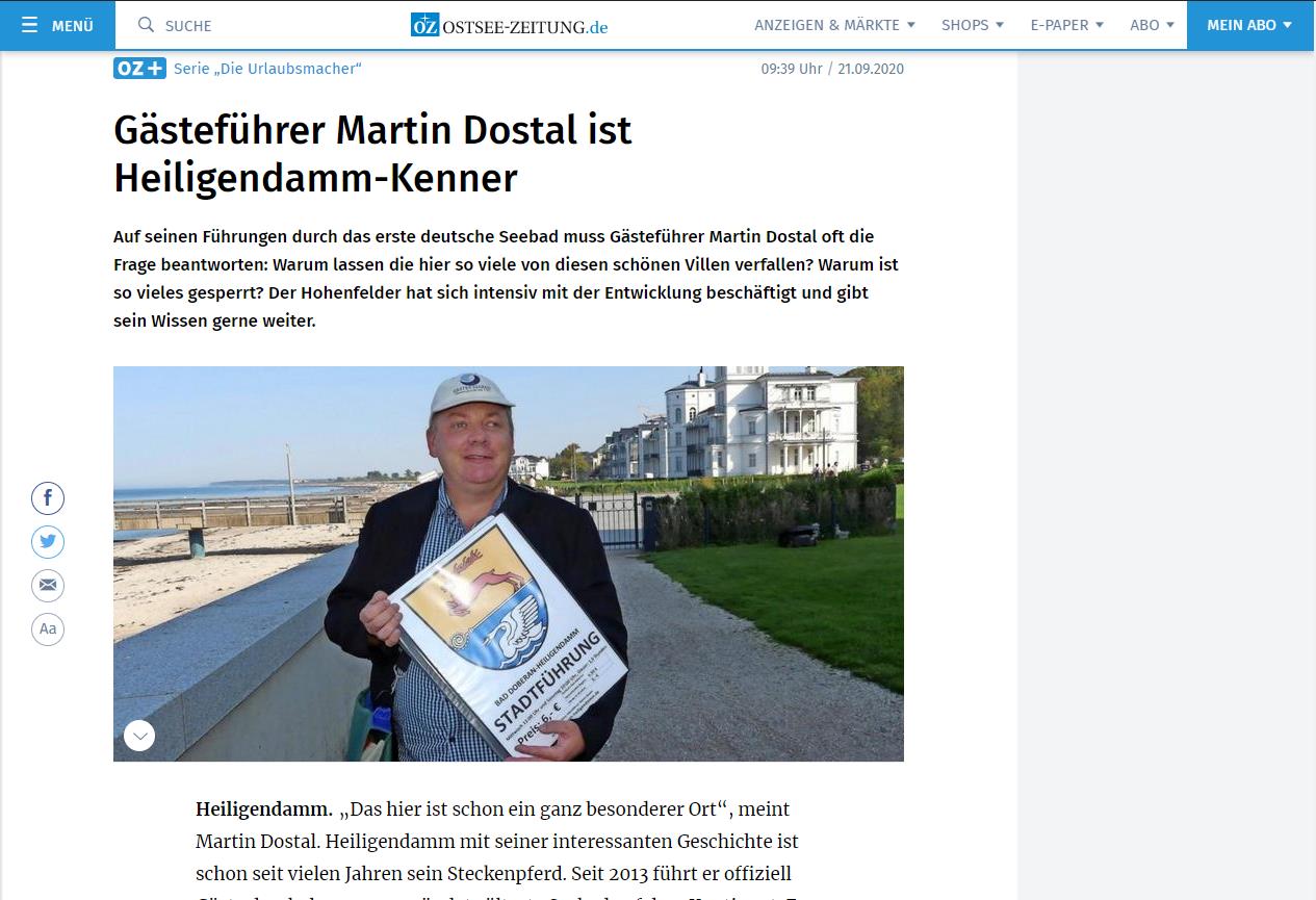 Auch die Stadtführer zogen ab August wieder los. Zunächst mit kleinerem Angebot und nur mit Anmeldung. Als dann das Doberaner Münster auch wieder Führungen zuließ, erweiterten sie das Angebot. Bis Ende Oktober gibt es noch mittwochs öffentliche Führungen in Heiligendamm. Die OSTSEE-ZEITUNG begleitete in ihrer Serie „Die Urlaubsmacher“ auch den Macher dieser Seite.