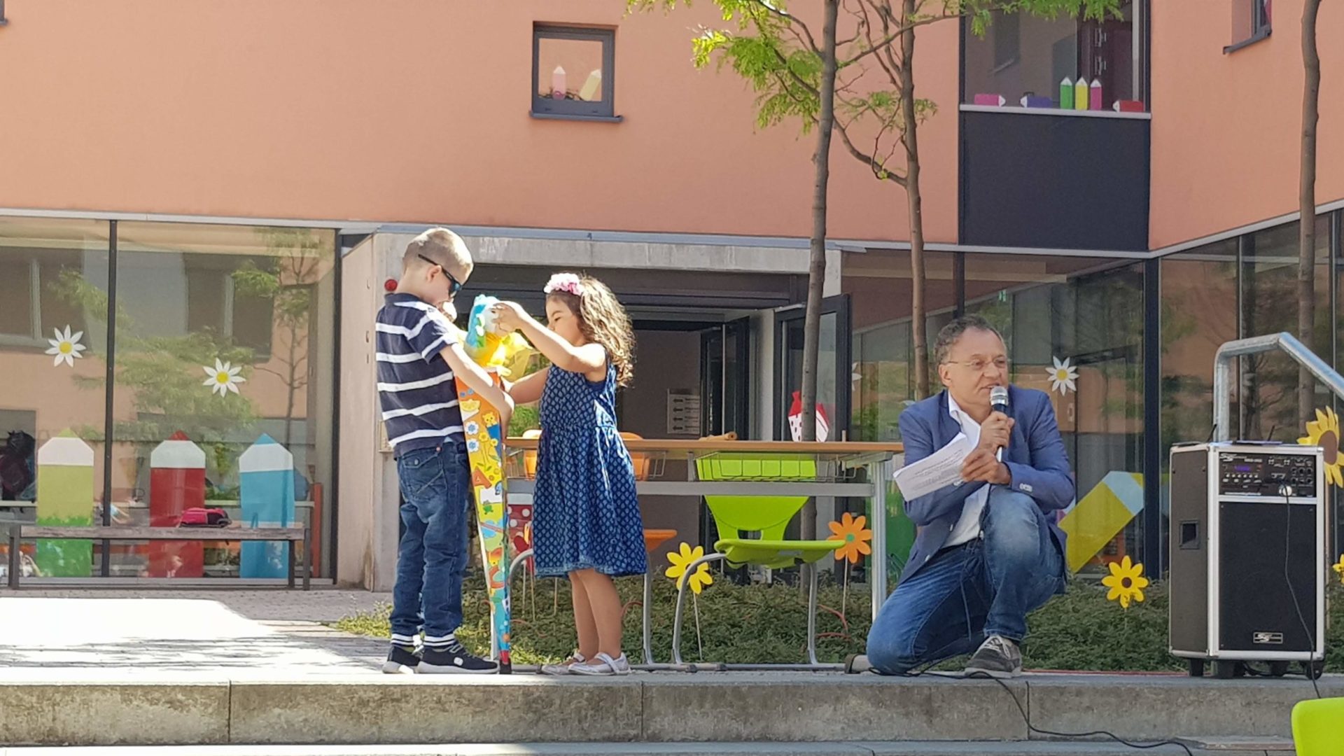 Die Schulen hatten sich lange vorbereitet. Die Einschulungen sollten draußen stattfinden und vier Personen die Schulanfänger begleiten dürfen. Dafür gab es zwei gelbe und zwei blaue Eintrittskarten. Wenn das Wetter nicht mitspielt, würden die blauen Karten ungültig werden und dürften nur zwei Personen in die Aula. Das Wetter spielte mit, die Sonne brannte regelrecht. Gute Vorzeichen für eine Einschulung zu Corona-Zeiten.