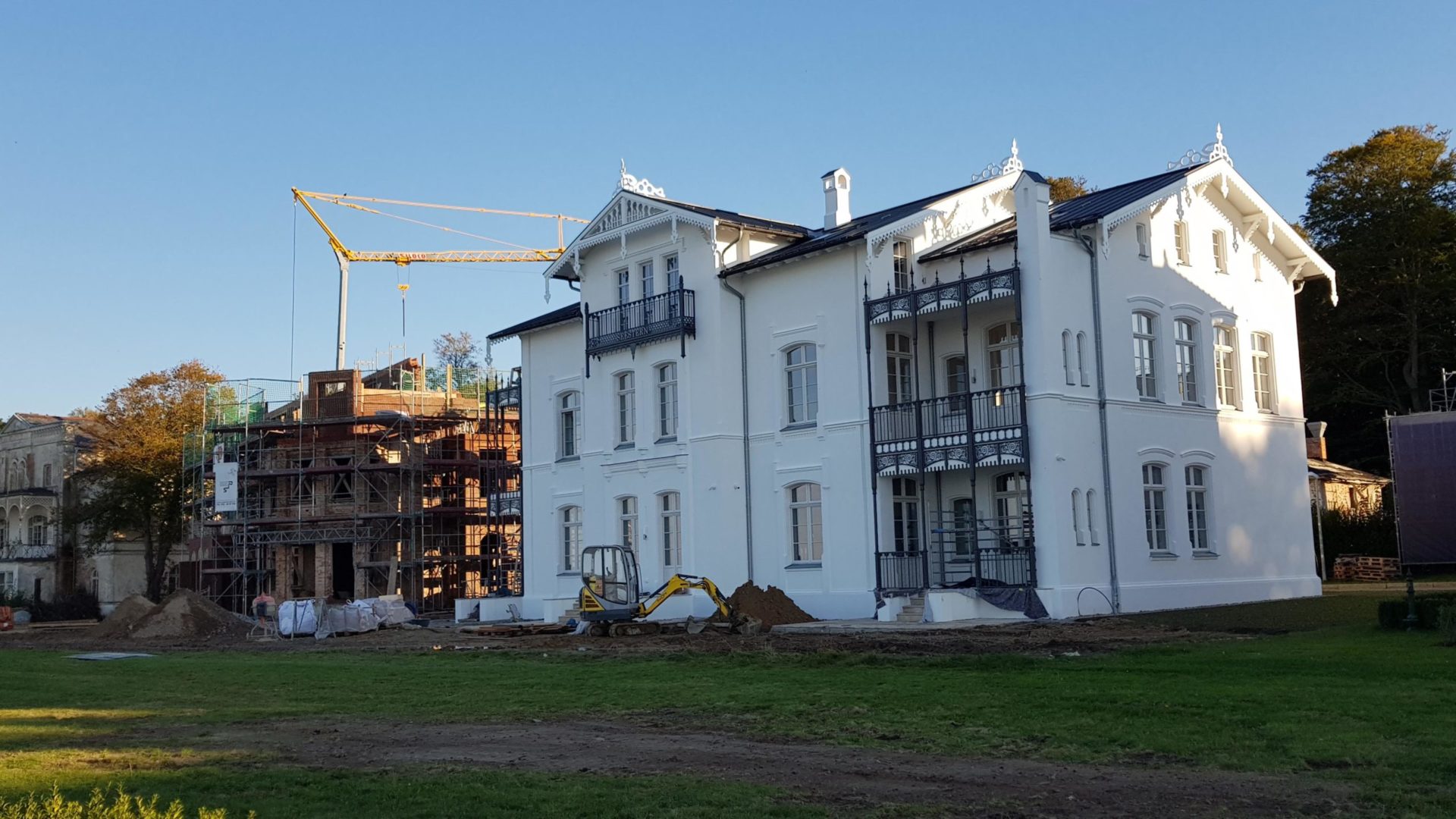 In Heiligendamm sind die Gerüste von Villa „Seestern“ gefallen, Villa „Schwan“ bekommt ein Dach und die Kolonnaden sind in der Vermarktung. Die Boarding Houses erreichen Rohbauzustand und bei „Pearl 8“ ist man an den Dacharbeiten bei.