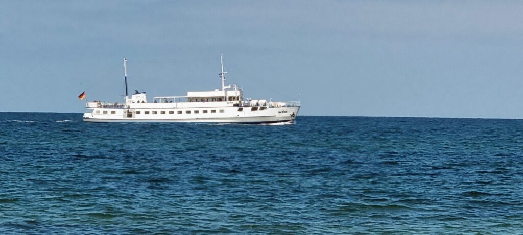 Obwohl die in Heiligendamm gar nicht anlegte, gehörte sie zum Geschehen in der Weißen Stadt am Meer einfach dazu: Das Ausflugsschiff MS BALTICA. Es verkehrte zwischen den Ostseebädern Kühlungsborn, Warnemünde und Graal Müritz und tuckerte stets in Sichtweite am ältesten deutschen Seebad vorbei. Dass es hier nie anlegte, hat einen simplen Grund: Das Wasser ist am Ende der Seebrücke zu flach. Die MS BALTICA hatte es ein einziges Mal versucht, dabei aber den Anleger beschädigt. Schließlich fand man es auch gar nicht so verkehrt, dass nicht noch zusätzlich Massentourismus „angespült“ wird und so blieb es beim Vorbeifahren.