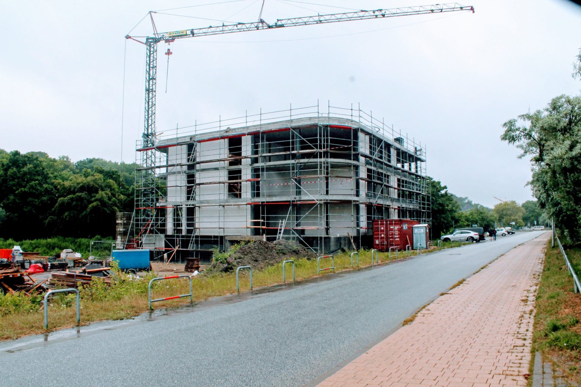 Für den zweiten Bauabschnitt hat er bereits ein Grundstück erworben, aber um die beiden Gebäude in einer Flucht zu bauen, möchte er vorn einen etwa 350 Quadratmeter großen Streifen kaufen. Zu einem Drittel wächst darauf Unkraut, aber zu zwei Dritteln gibt es dort 13 Parkplätze. Um diese Parkplätze geht es nun.