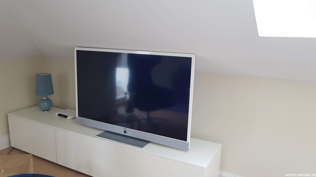 Der Fernseher machte mir keine Probleme. TV einschalten, Settop-Box einschalten und das bekam sogar Söhnchen hin. Großes Bild – für die Entfernung gerade richtig. Die Fernseher sind von Loewe, übertrumpfen also unseren kleinen Telefunken-Billigfernseher, aber dafür haben wir Dank angeschlossenem Lautsprecher besseren Klang. Die Geschwindigkeit beim Zappen ist so lala, aber das kenne ich als ehemaliger Entertain-Kunde.