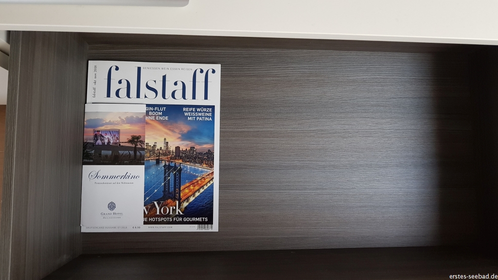 Das Internet war zügig – ich habe es nicht getestet, wie schnell, aber auf jeden Fall gefühlt so schnell, wie zuhause mit 50 Mbit/s. Wenn dasselbe Netz genutzt wird, wie es die ECH hat, sind das Geschwindigkeiten, von denen Normalverbraucher nur träumen können. WLAN ist übrigens kostenlos, Logindaten stehen in der Gästemappe. Das war mir schon nicht unwichtig, denn zum Geburtstag kamen erwartungsgemäß viele Nachrichten und Internet über Mobilfunk ist in Heiligendamm zumindest mit Vodafone nicht gerade gut abgedeckt.
