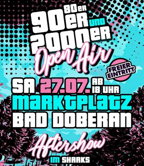 Veranstaltungsarchiv Sharks 80er-90er-2000er-Party zur Sommernacht Bad Doberan (27.07.2024) 27. 07 2024 Martin Dostal 0 27. Juli ab 18 Uhr auf dem Marktplatz Bad Doberan – danach Aftershow-Party im Sharks. Diesen Beitrag teilen:teilen teilen teilen teilen teilen merken teilen teilen teilen RSS-feed teilen E-Mail drucken spenden Teilen mit: Auf Facebook teilen (Wird in neuem Fenster geöffnet) Facebook Auf X teilen (Wird in neuem Fenster geöffnet) X Schlagernacht im SHARKS Club Bad Doberan (18.01.2025)Datum17. 01 2025In Bezug aufVeranstaltungsarchivVeranstaltungen vom SHARK’S ClubDatum2. 04 2025In Bezug aufVeranstaltungenDie große Doberaner Silvesterparty (31.12.2025)Datum1. 11 2025In Bezug aufVeranstaltungsarchivAnzeige