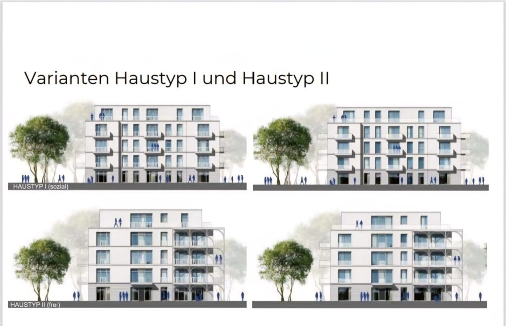 Geplant sind sechs Mehrfamilienhäuser mit jeweils 4 Vollgeschossen und einem Staffelgeschoss. Zwei der Gebäude mit insgesamt 46 Wohnungen seien für geförderten Wohnungsbau vorgesehen, die restlichen vier Häuser für 60 Wohnungen ohne Mietpreisbindung. Es sollen 106 Wohnungen entstehen, davon 46 für den sozialen Wohnungsbau. Die Wohnungen sollen Größen zwischen 55 und 107 Quadratmetern haben. Tiefgaragen und ein Spielplatz sollen entstehen. Eigentumswohnungen oder Gewerbe seien auf der Fläche nicht geplant. Eine Vermietung an Touristen sei untersagt, so Corleis. Streeck geht von einer zweistelligen Millioneninvestition aus. 2028 könnten die ersten Mieter einziehen. Mit dem Abriss beginne man, wenn der B-Plan geändert ist. Eine Bescheinigung, die den Abriss erlaubt, liegt laut Corleis vor. Ein möglicher Baustart könnte im Sommer 2026 sein. Streek habe gemeinsam mit Corleis die Pläne entwickelt. Laut David Corleis endet die Frist zum steuerfreien Verkauf des Grundstücks am 18. September 2025 und sollen dann Verkaufsverhandlungen möglich sein.