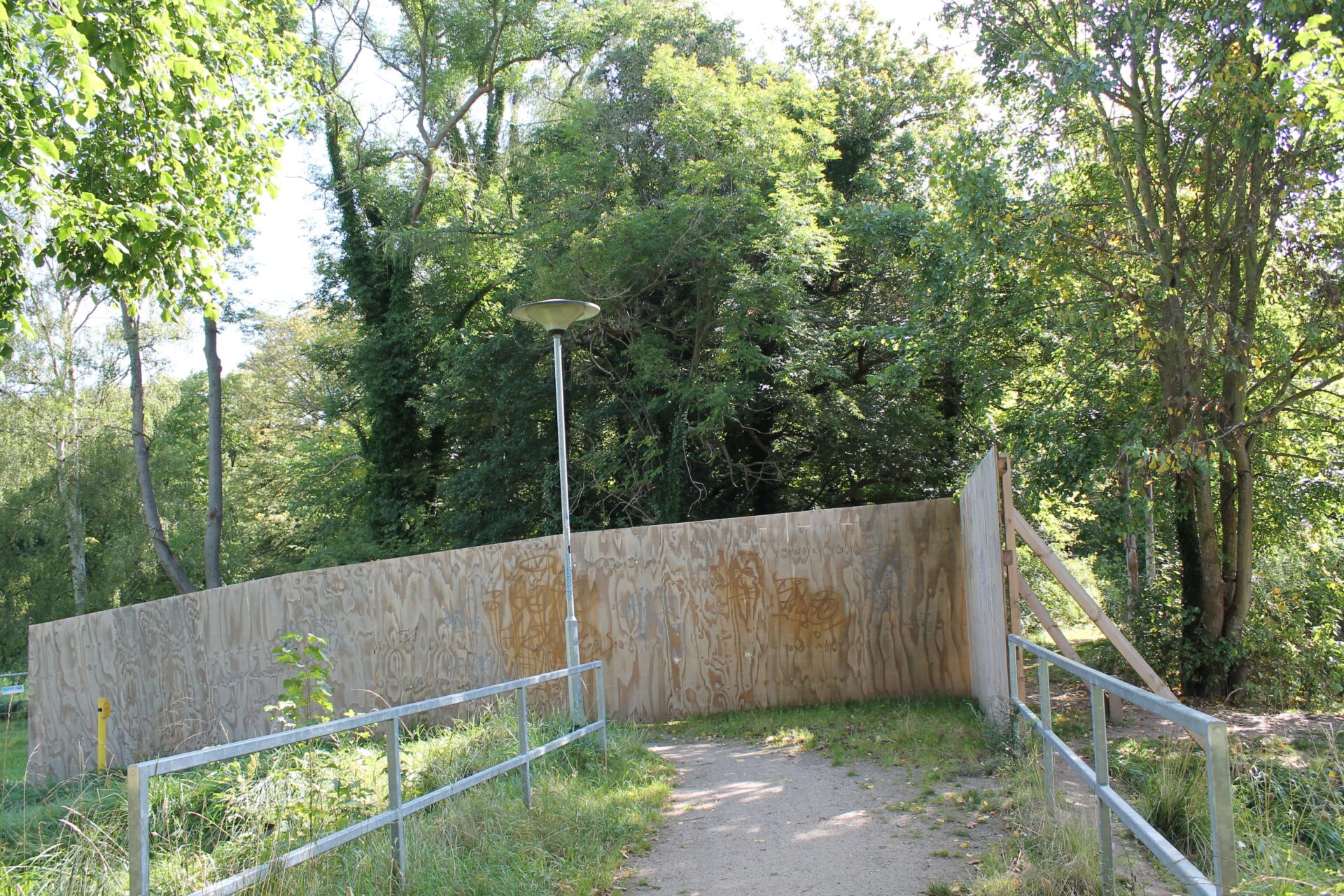 Das Rathaus reagierte mit Entsetzen und lehnt ab. Der einfarbige Holzzaun wurde am 25. Juni von 14 Jugendlichen der Jugendkunstschule mit einer Abbildung besprüht.