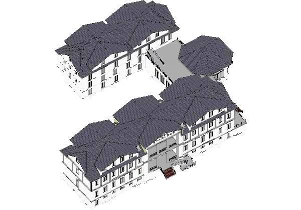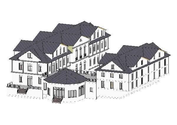 rückwärtiges und ebenfalls dreigeschossiges „Bettenhaus“ ergänzt wird. Verbunden werden soll beides durch ein zweigeschossiges Gebäude, in dem sich dann das Restaurant oder das