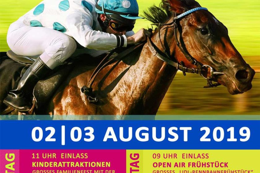 Archiv Ostsee-Meeting Galopprennen (02.08.-03.08.2019) 26. 07 2019 Martin Dostal 0 Programm der beiden Renntage zum Ostsee-Meeting 2019 auf der Ostseerennbahn Bad Doberan-Heiligendamm