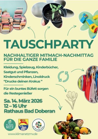 Veranstaltungen Tauschparty im Rathaus Bad Doberan (14.03.2026) Martin Dostal 0 Diesen Beitrag teilen:teilen teilen teilen teilen teilen merken teilen teilen teilen RSS-feed teilen E-Mail drucken spenden Teilen mit: Auf Facebook teilen (Wird in neuem Fenster geöffnet) Facebook Auf X teilen (Wird in neuem Fenster geöffnet) X Gefällt mir:Gefällt mir Wird geladen … Ähnliche Beiträge